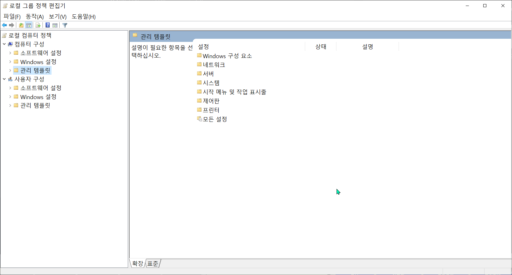 2.로컬그룹정책 편집기에서 관리 템플릿 선택