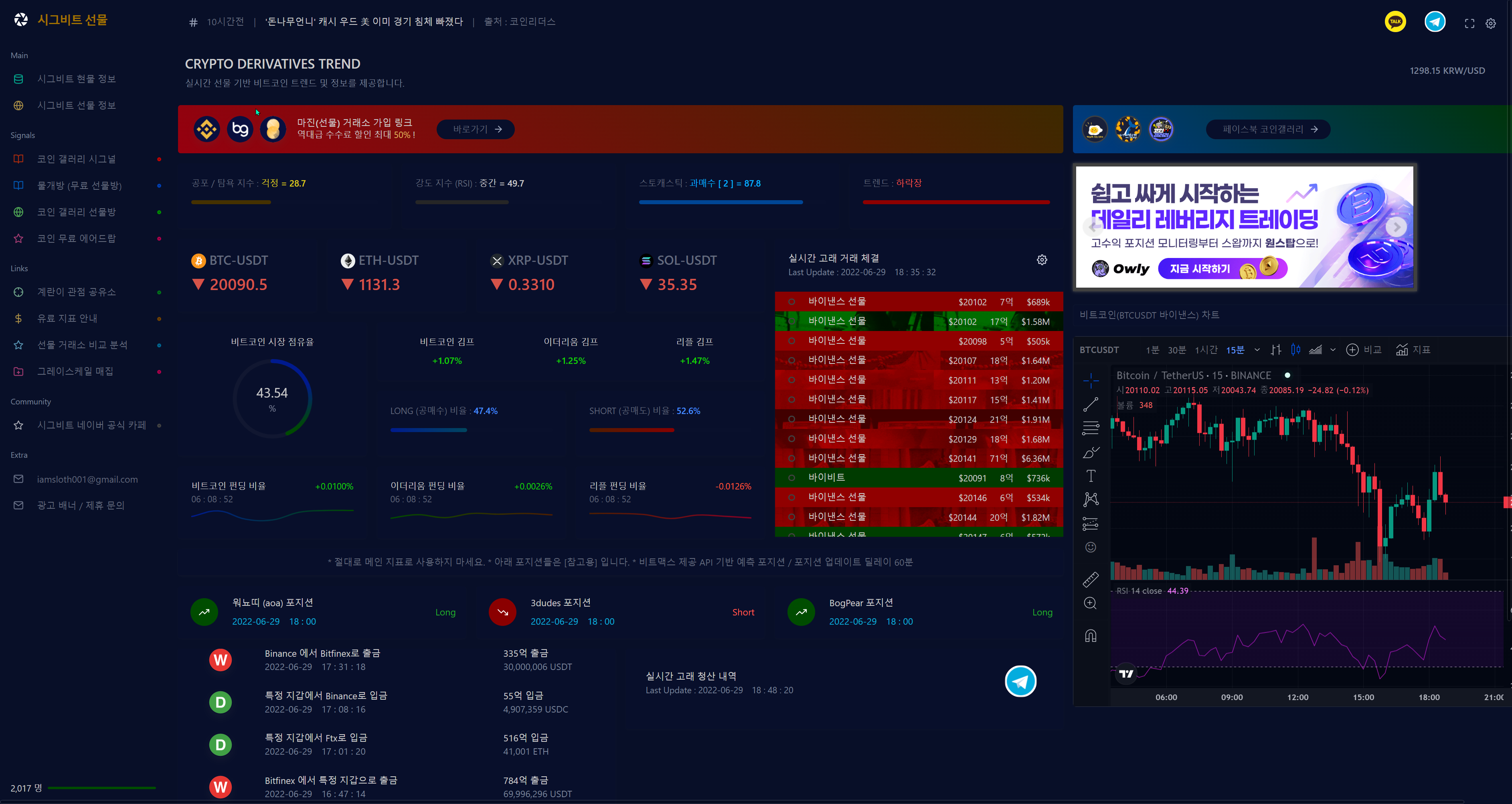 시그비트 : 워뇨띠 포지션, 실시간 고래 입출금/체결, 매수 매도 시그널
