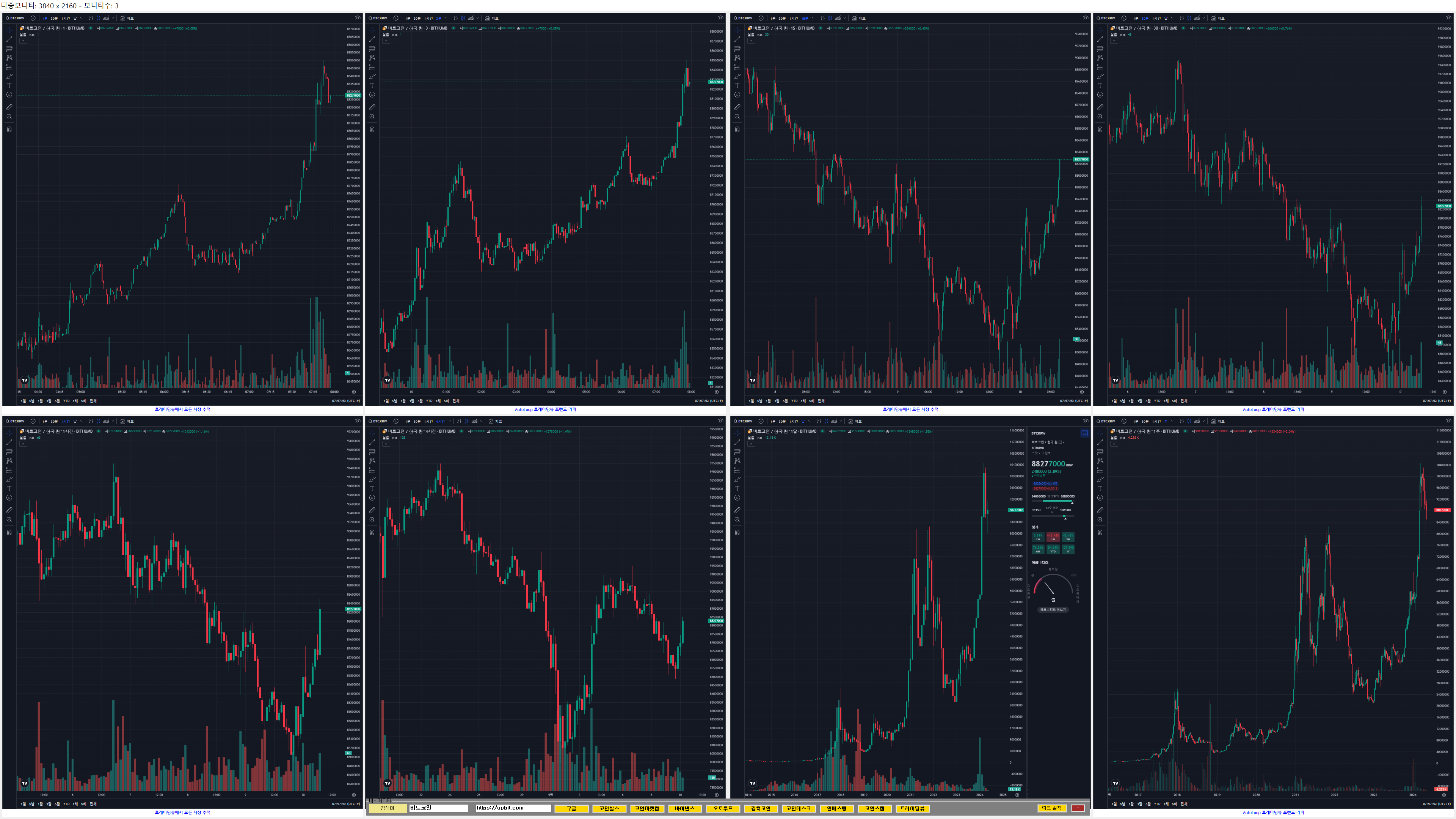 차트는 트레이딩뷰이며 해상도 1920 * 1080 이상 고해상도 사용시 8분할 차트지원합니다.Tested(3840*2160)