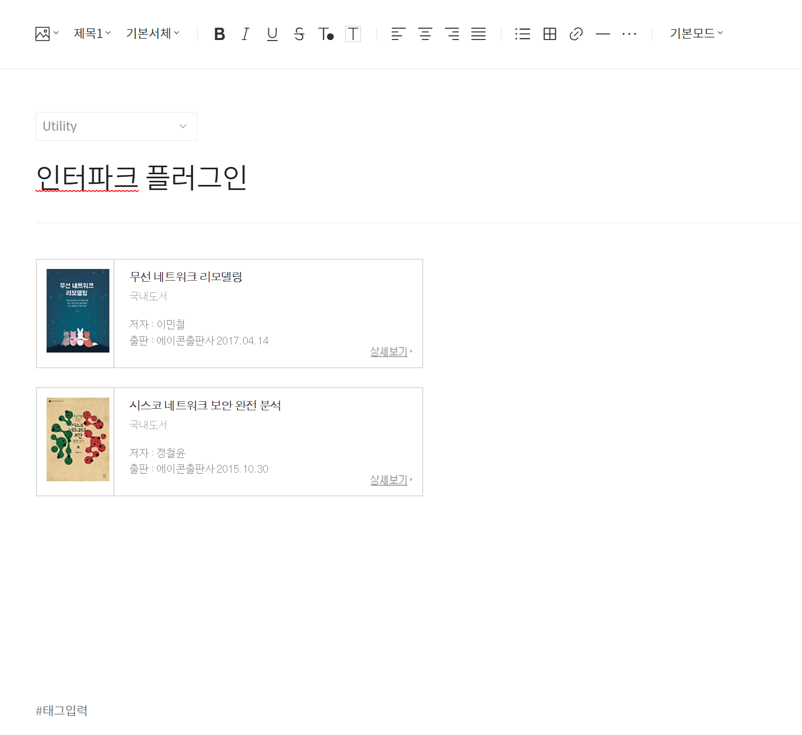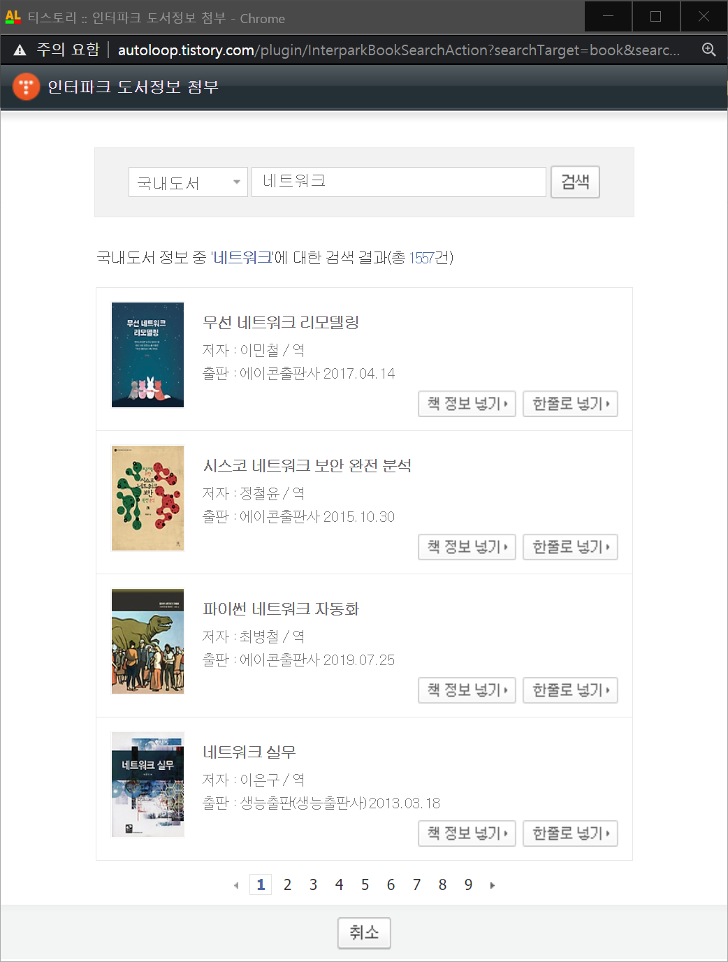 1.티스토리 플러그인중에 인터파크 플러그인이 있서 프로그램 관련 서적
