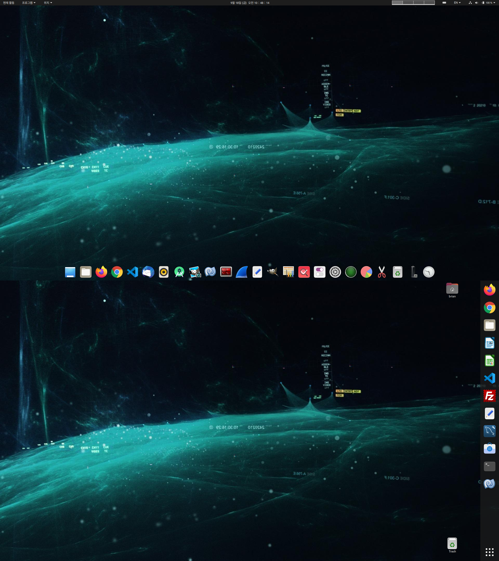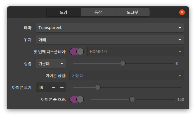 Plank 하단에 마우스 옮기고 CTRL + Mouse 오른쪽 클릭