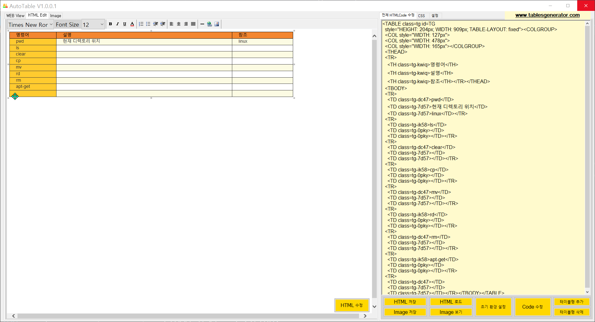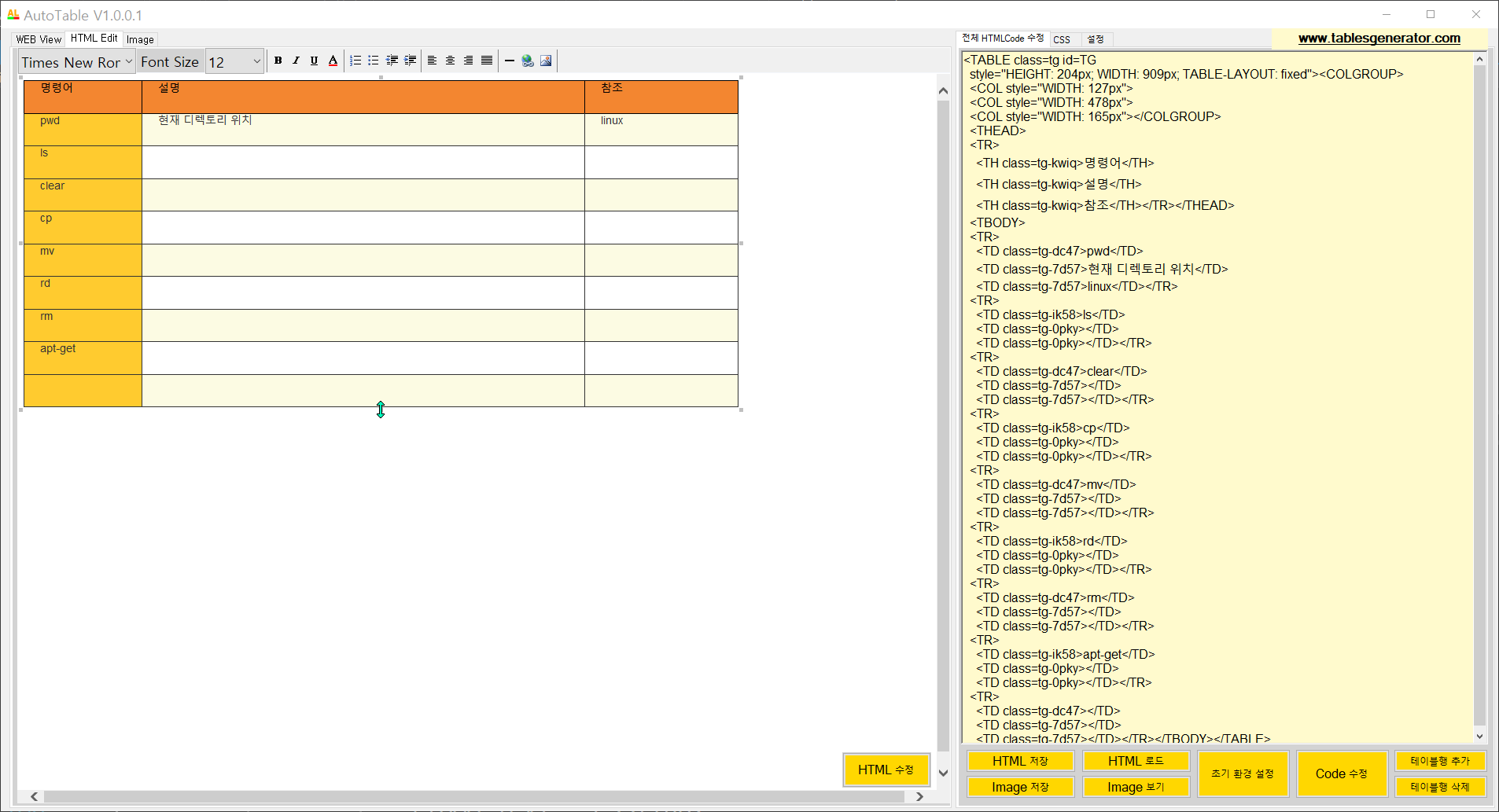 테이블 입력이 적을시 이미지 하단에 공백이미지가 생기니 조정해서 사용하시기 바랍니다.