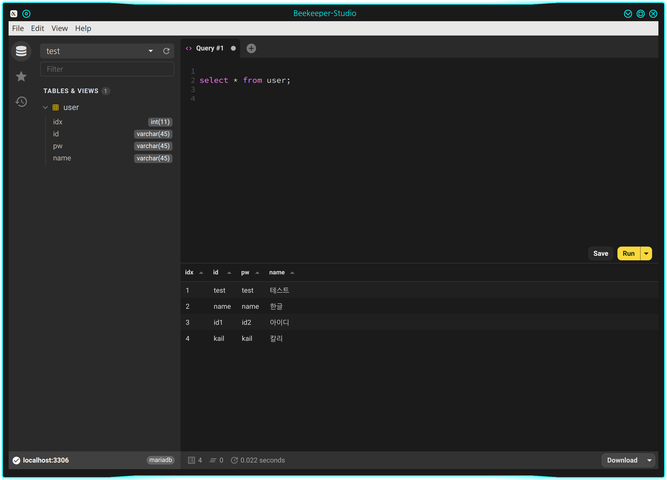 개발 테스트시 데이터베이스 SQL Query를 간단 테스트 사용하기에