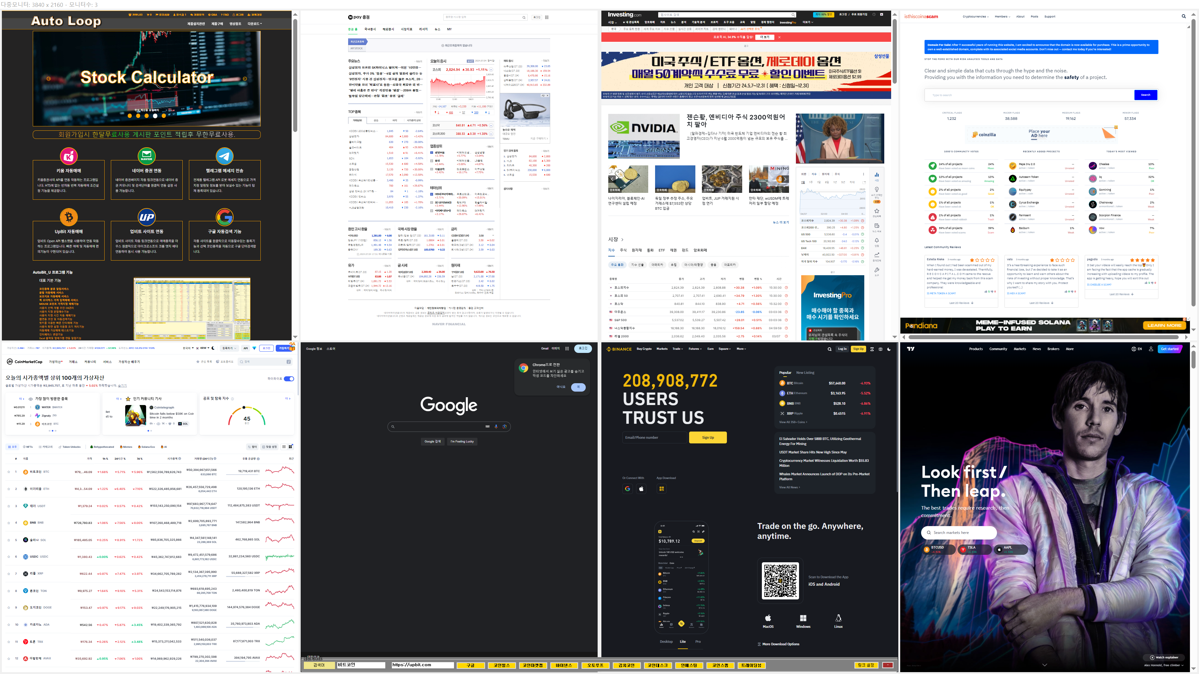 BingX 거래소(Future) 트레이딩뷰 연동 멀티차트 보기입니다. 해상도 38 40 * 2160 에서 차트 8개까지보실수있습니다