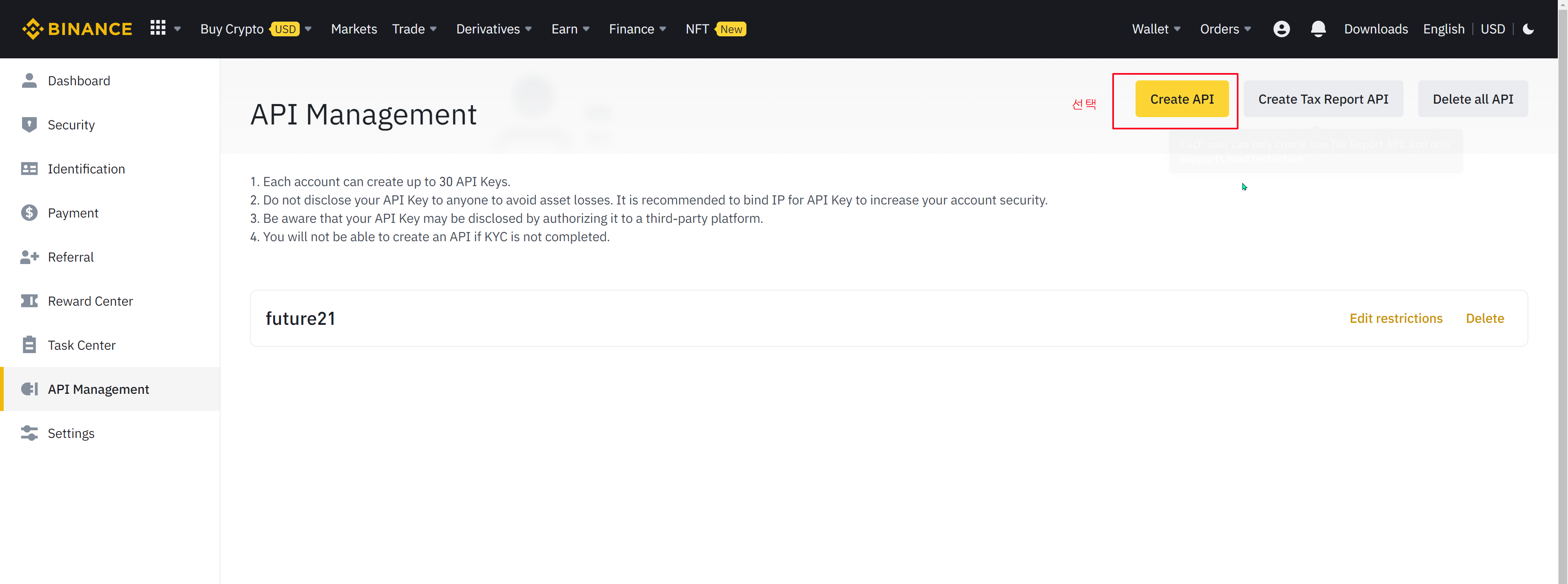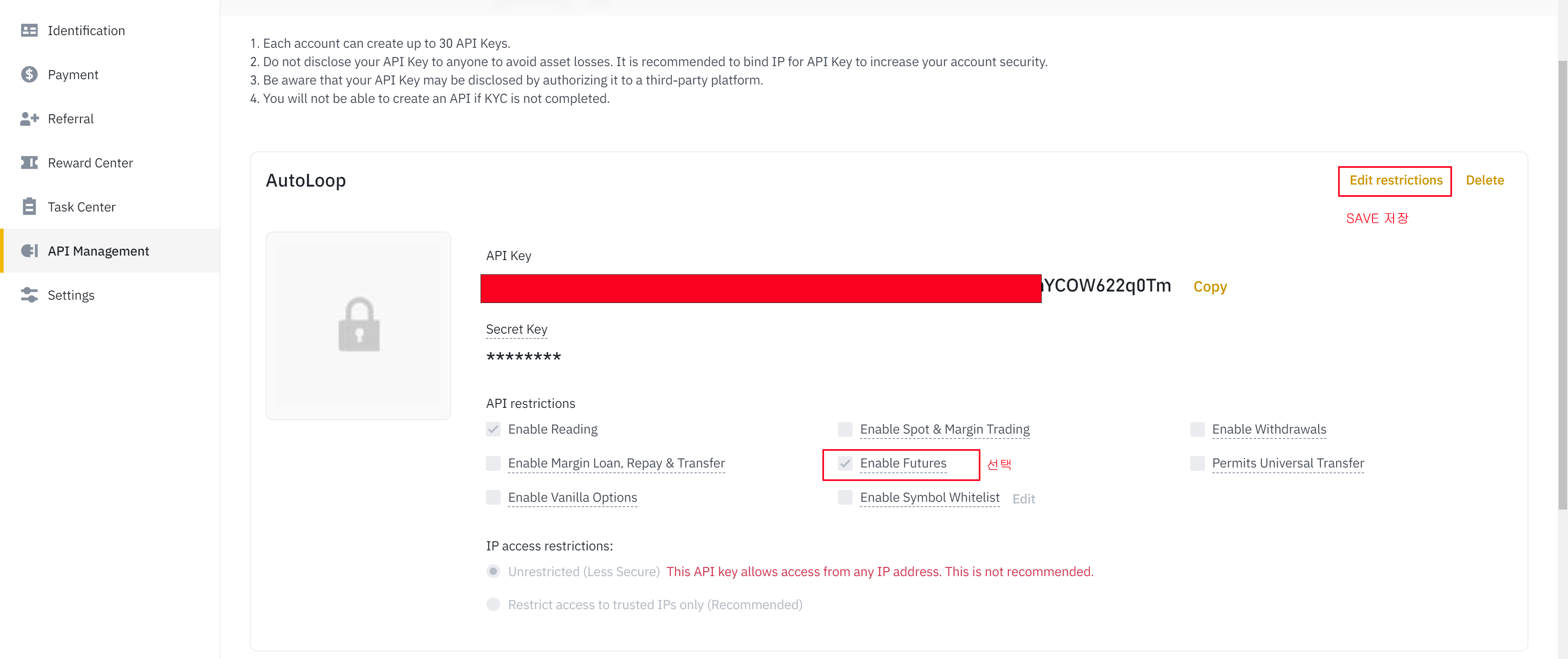 바이낸스 API 사용 설정