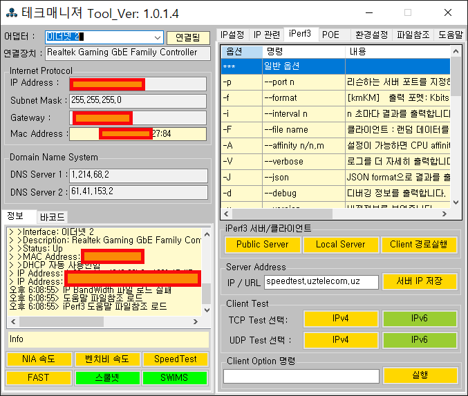 측정 테스트 사용 간편화에 두고 제작.1.서버 포트 체크화면2.iperf 서버 측정테스트 화면3.iperf 사용 tool 환경설정*등록후 등록데이터 삭제시 등록화면 오른쪽 마우스 클리하면 삭제 화면 팝업.4.