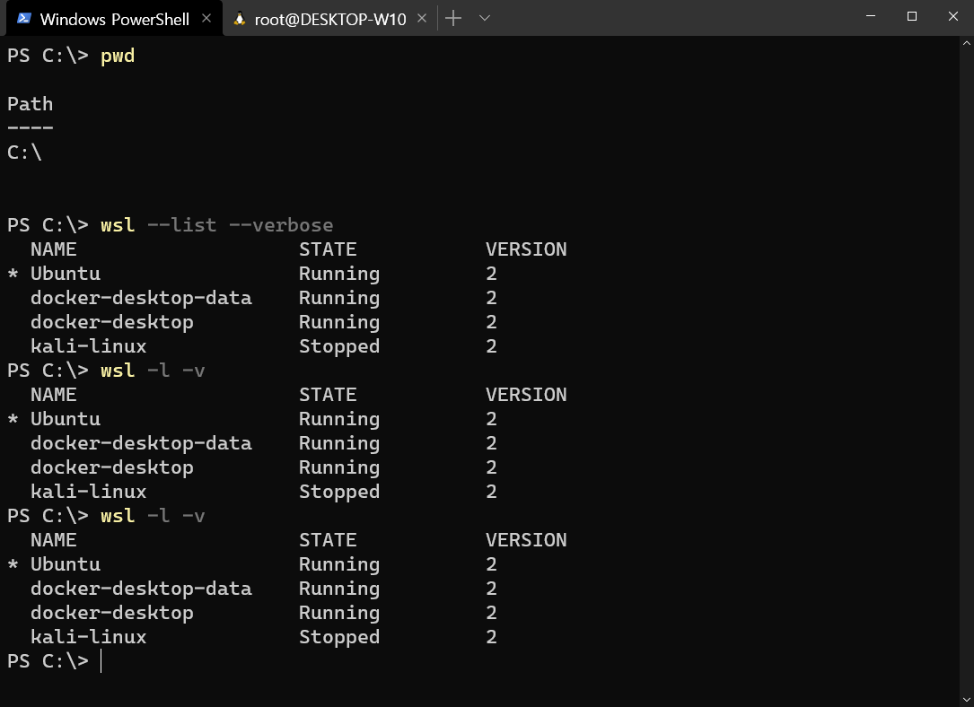 wsl --list --verbose == wsl -l -v
